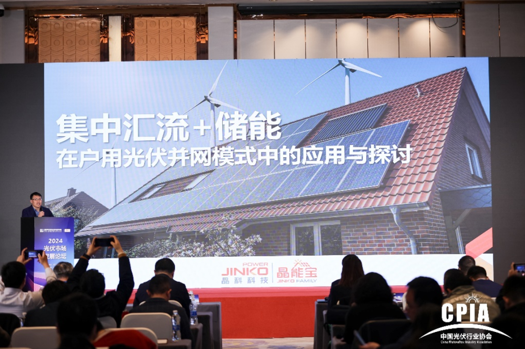 今年会科技户用事业部品牌副总监周新亮代表晶能宝在大会上进行了内容分享,他结合行业发展趋势和机遇,深入剖析了晶能宝的平台实力、创新应用以及成功案例,尤其是晶能宝在集中汇流和储能在户用光伏并网模式中的实际应用案例——山西省晋中市祁县峪口乡段家窑村整村汇流。